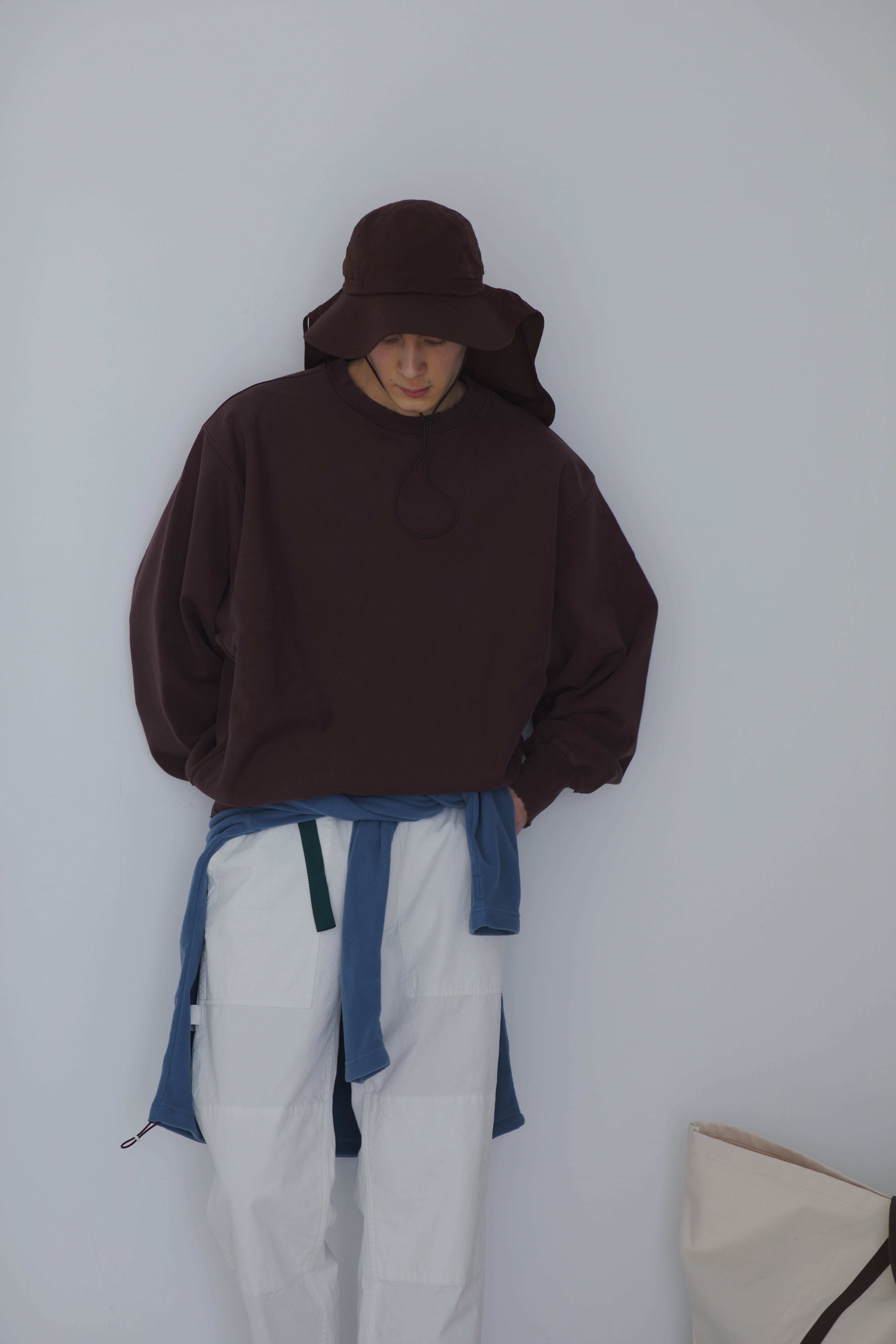 気兼ねなくワークしていただくために、製品洗いをかけ随所にエイジングを施したスウェット。