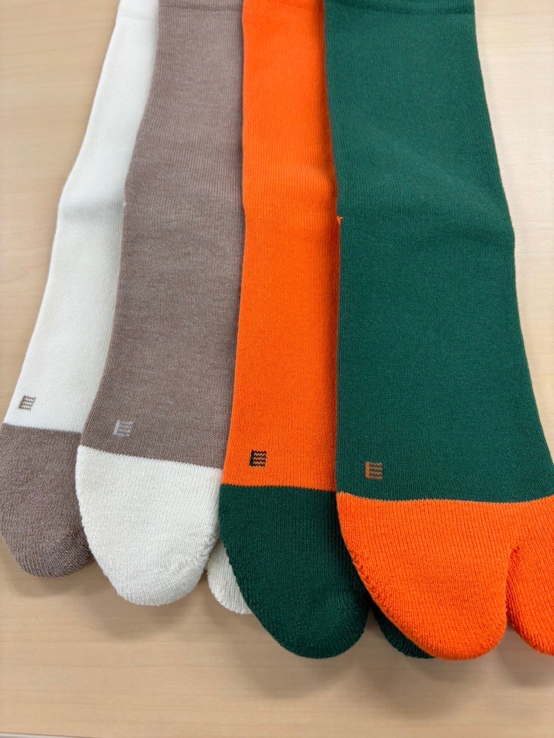 通常の足袋ソックスは、親指と人差し指の間に縫い目がきてしまい、異物感があったり、サンダルを履く際に痛くなる場合がありますが、創業75年の長野県の老舗靴下工場Amitabiさんの技術でそこをシームレスにすることで指の収まりが良く、包み込まれる絶妙な気持ちよさがあります。