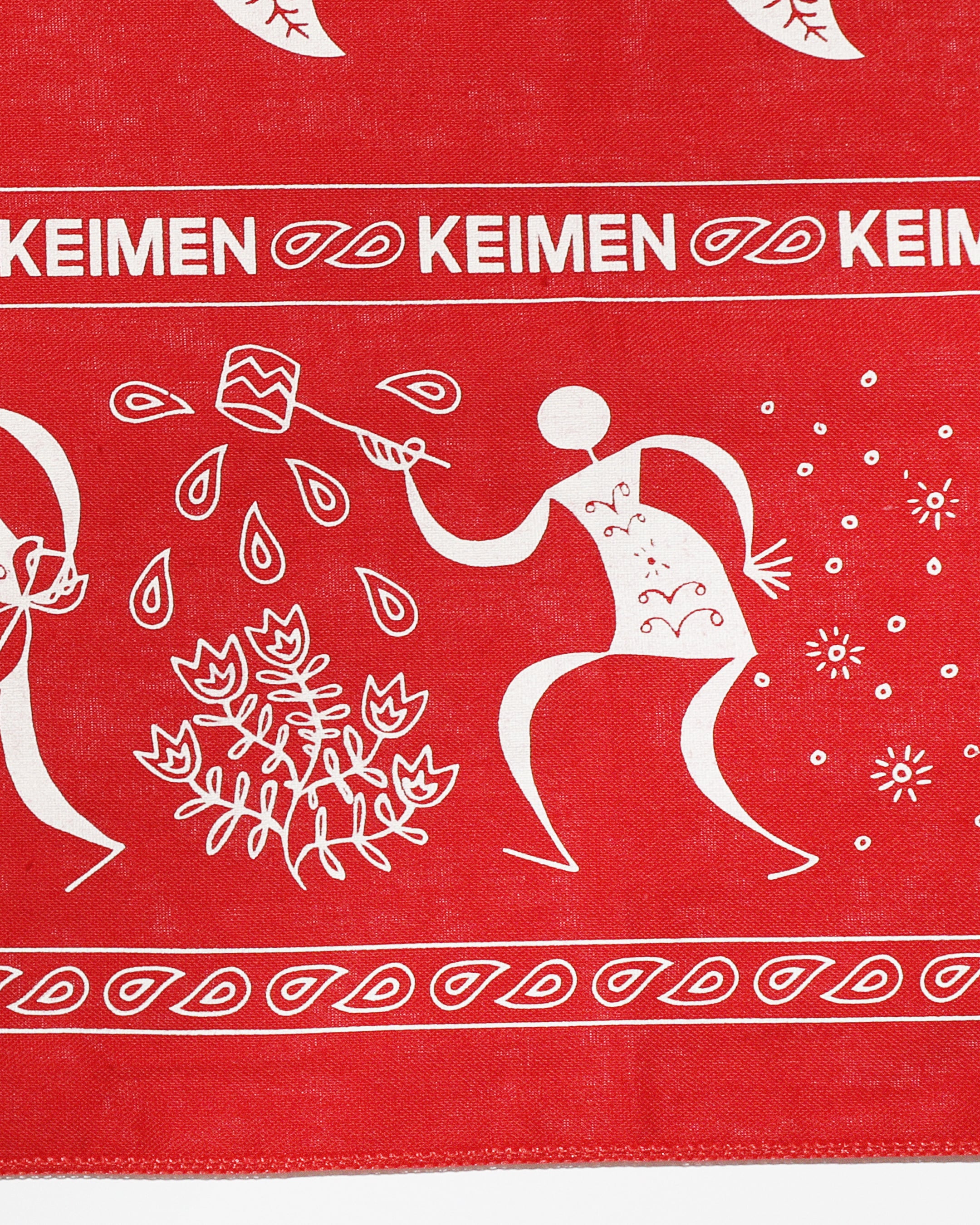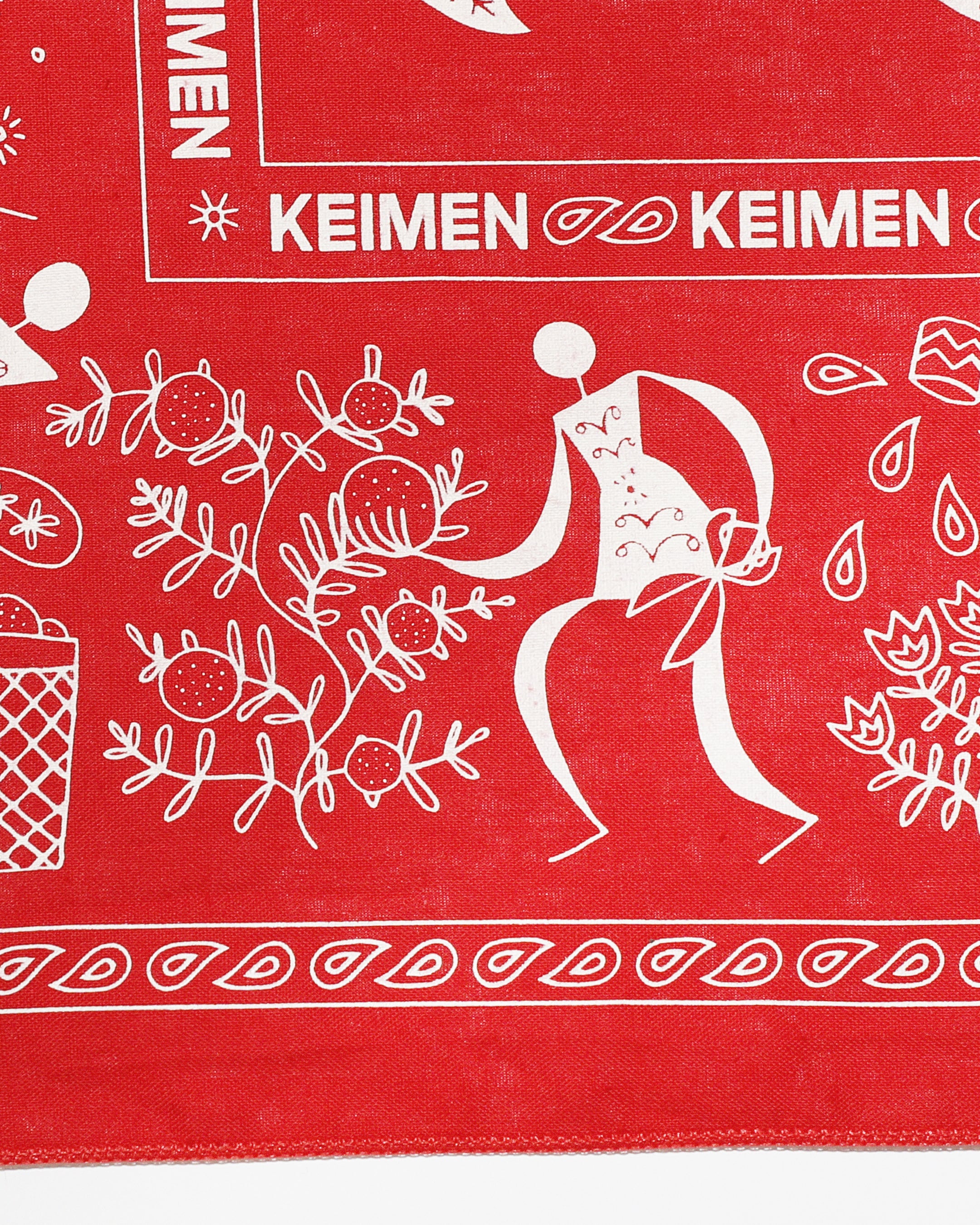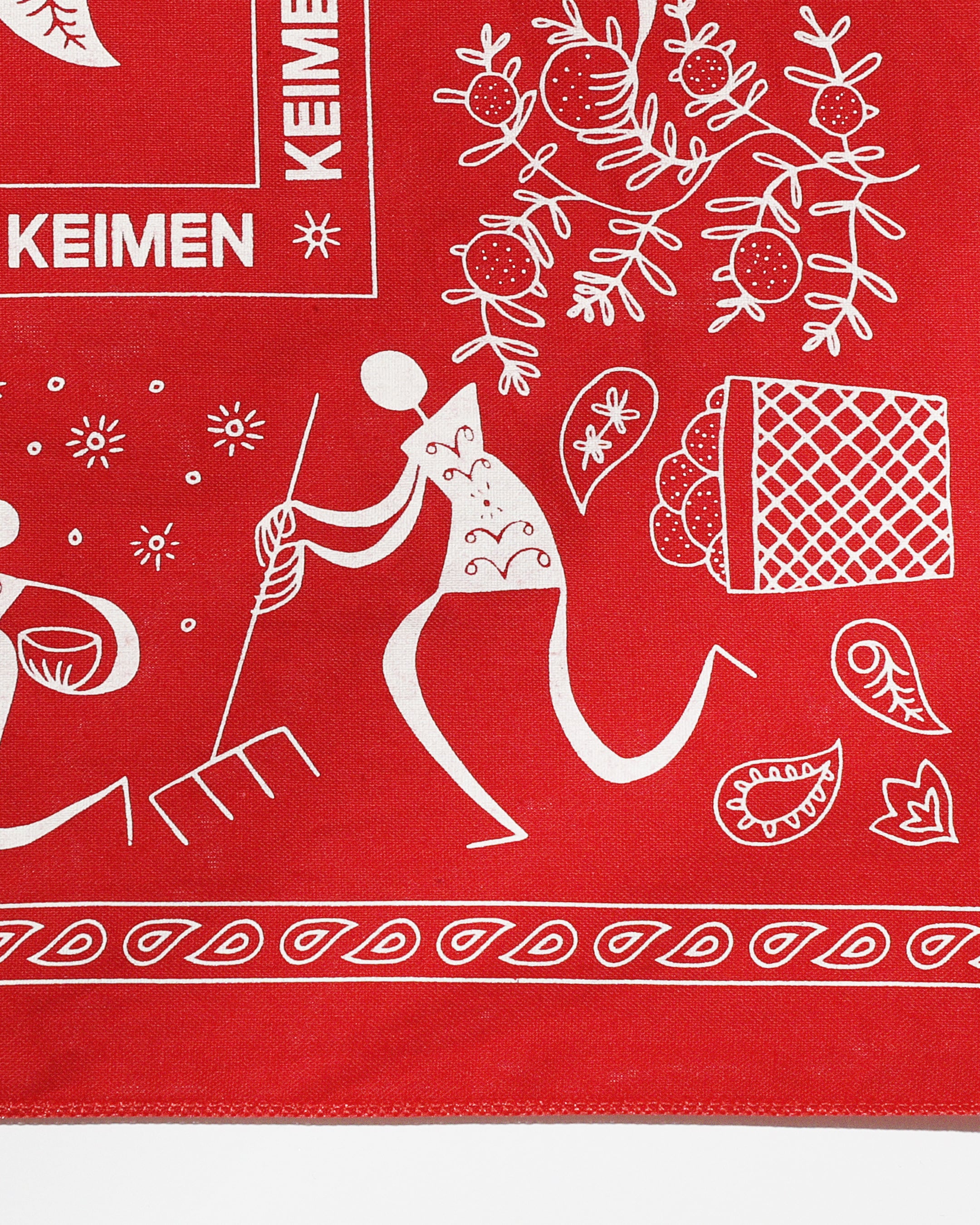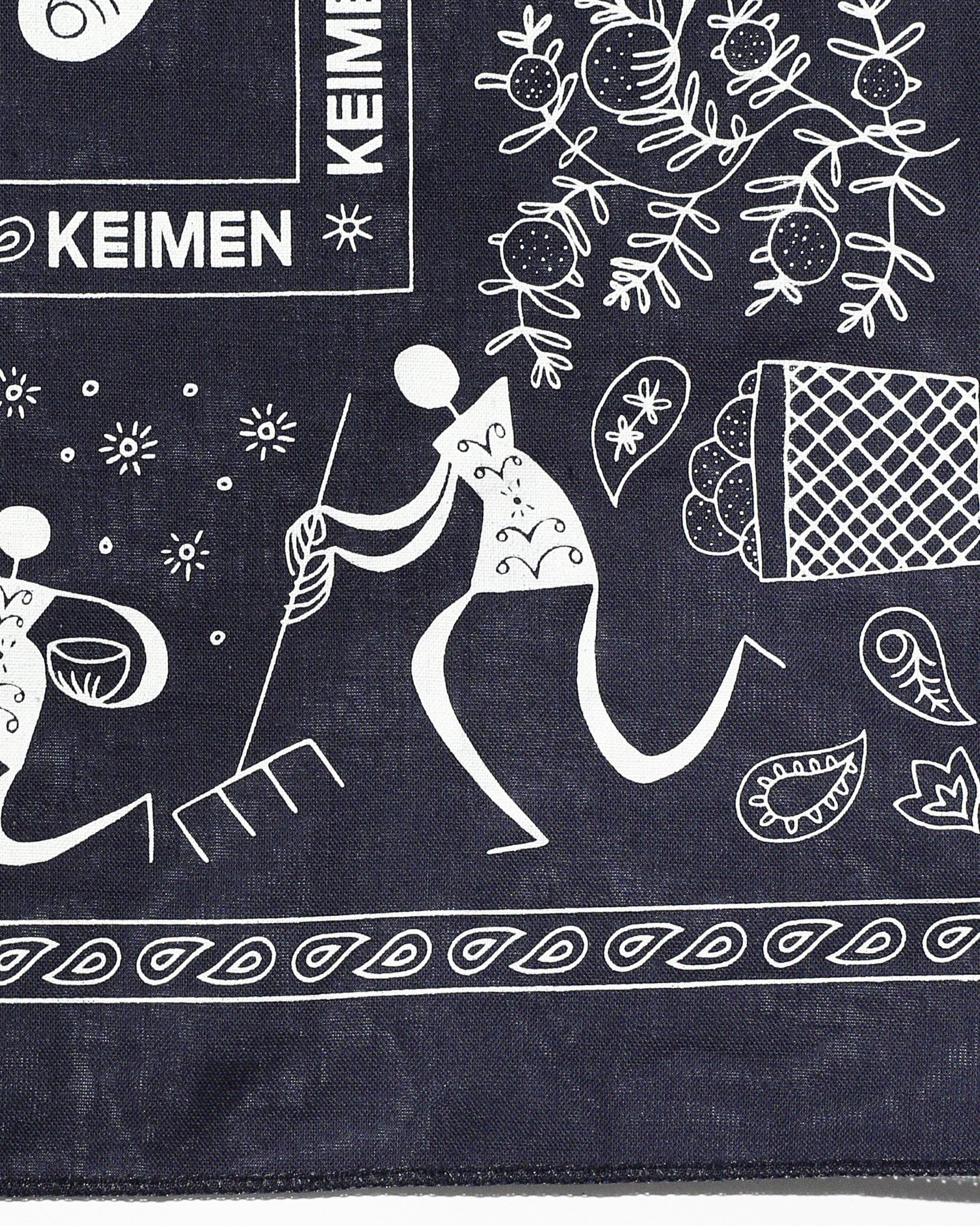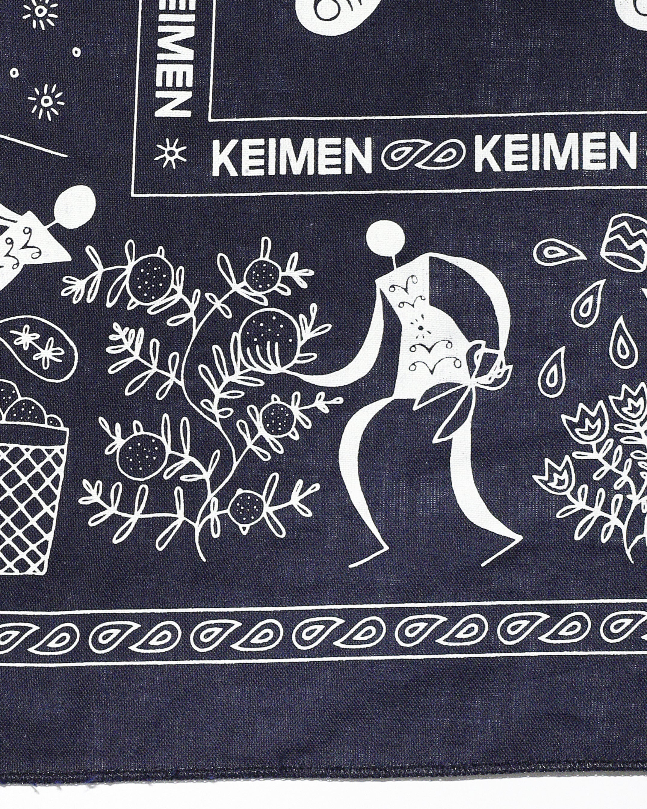 耕す、種を蒔く、水をあげる、収穫するといった栽培の工程をデザインしたバンダナとなっております。